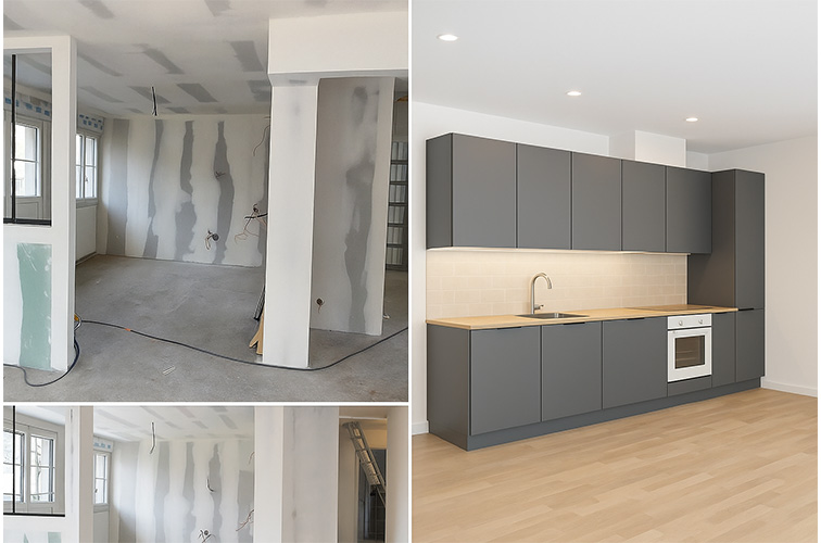 Les travaux ont inclus la rénovation complète de la cuisine et des salles de bains, la pose de nouveaux revêtements de sol, la peinture, l'installation électrique et de plomberie, ainsi que des travaux de menuiserie sur mesure pour cette rénovation intérieure à Paris et en Île-de-France.